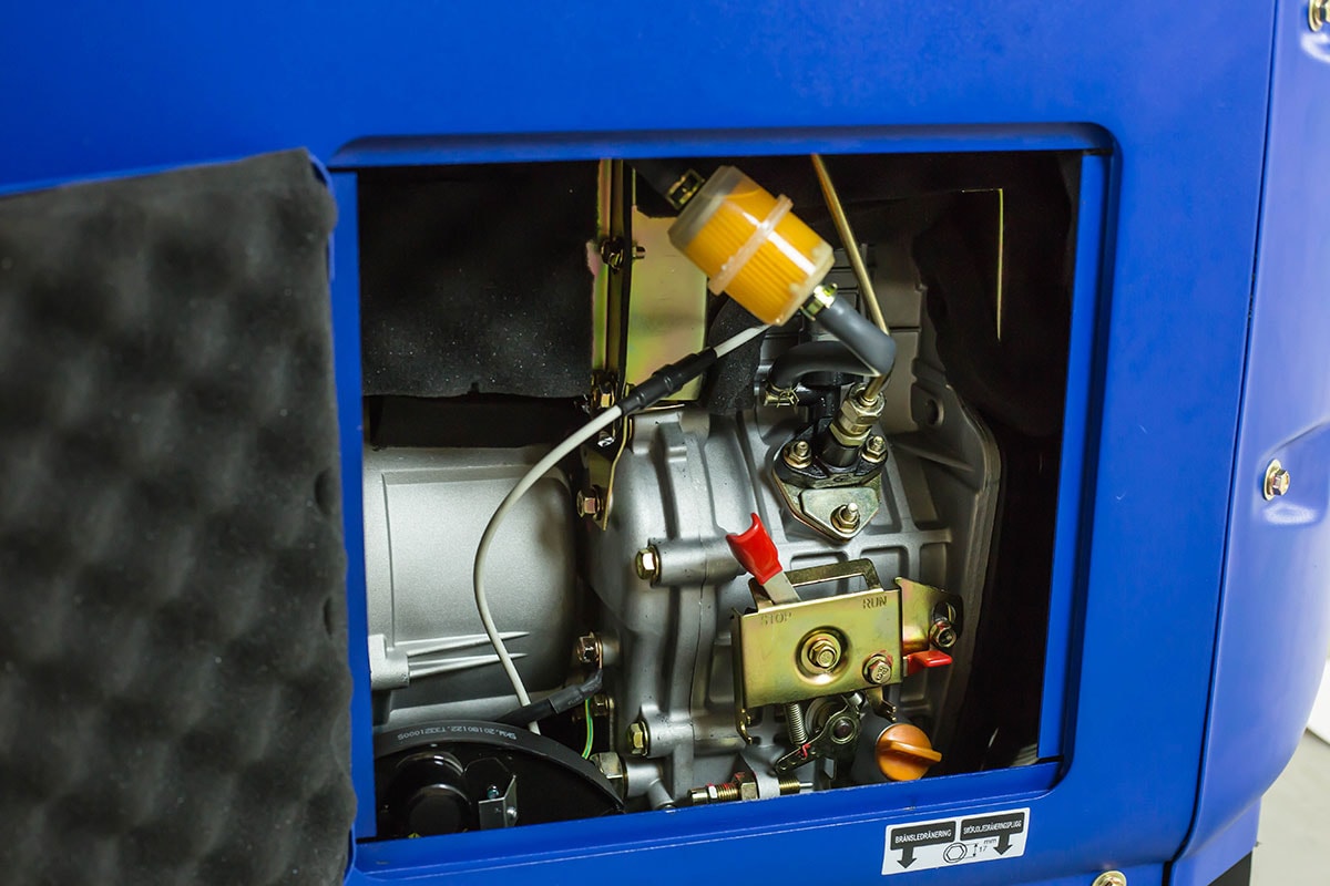 Duab-Power MDG6000S-KQ-3 er et ekstra lydtæt dieselkraftværk med en kraftig Mellga-motor på 9 hestekræfter. Motoren er luftkølet og startes via et elektrisk startsystem.