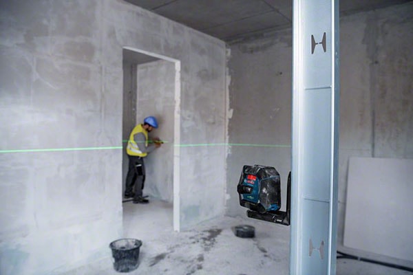 - Grøn laser gør de vandrette og lodrette linjer mere synlige