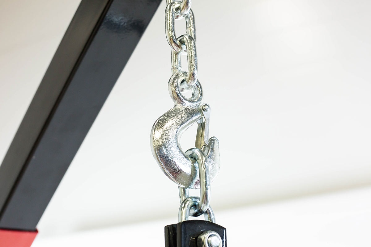 Værkstedskranen på billedet er ekstraudstyret med Motor Lifting Engine leveler artikelnummer 100699.