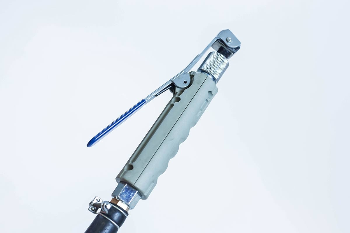 Leveres med godkendt blæsepistol med dødmandsgreb, blæsedyser, 2,5 meter slange, vandudskiller, trykmåler, beskyttelseskappe og hjulbeslag.