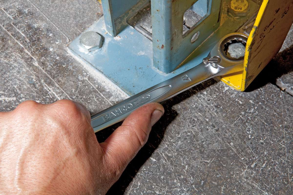 Bahco ring-skraldenøglerne har 5° arbejdsvinkel og er forsynet omskifter til hurtig ændring af højre og venstre omløb. Hver nøgle har tydelig dimensionsangivelse og er fremstillet i matforkromet, højtlegeret stål.
