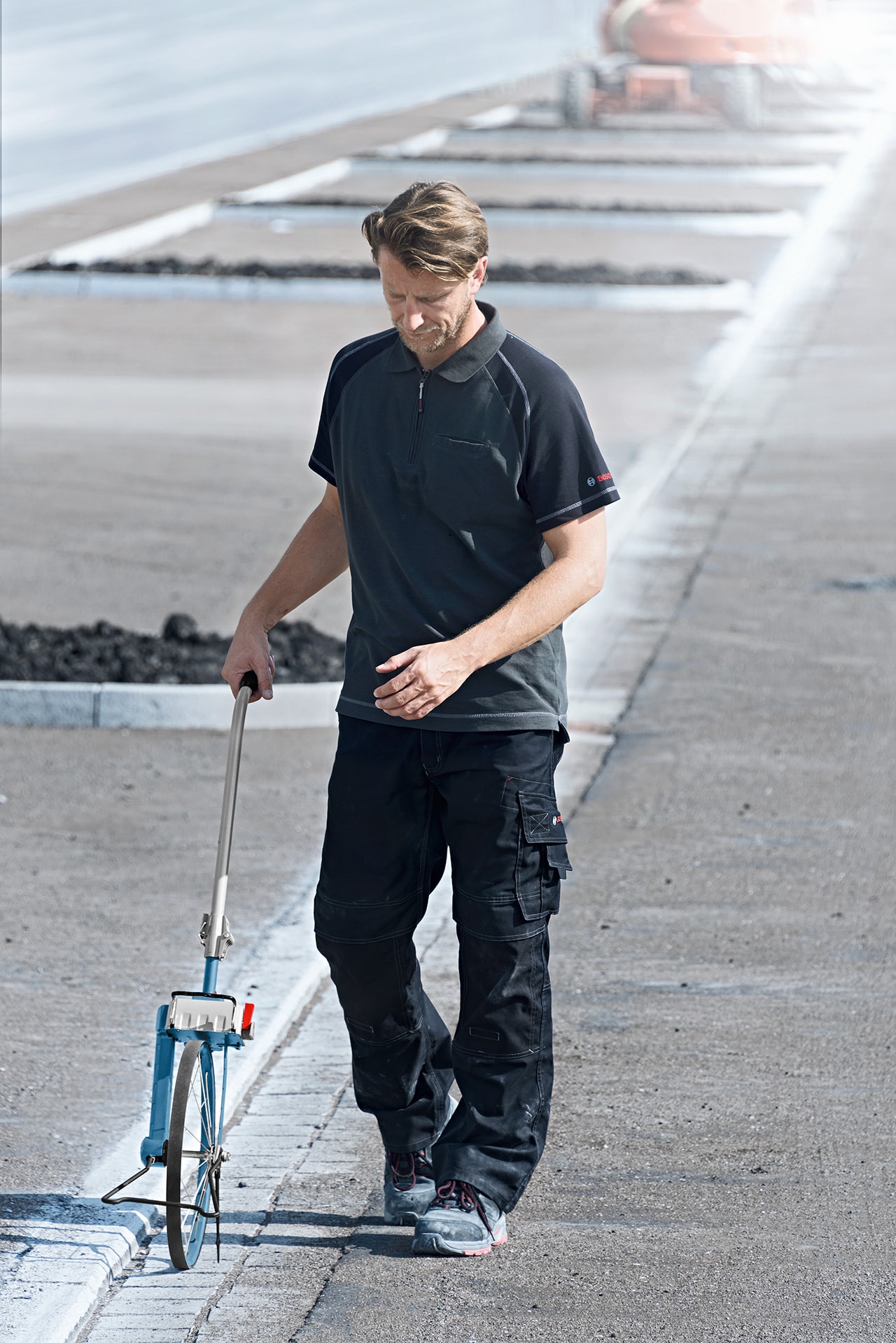Robust målehjul til brug på byggepladsen. Målehjulet har en lang levetid og høj stabilitet. Det 6-cifrede tælleværk er let at aflæse og er modstandsdygtigt over for slag. Nem nulstilling med tryk på en knap. En beskyttelsestaske medfølger.