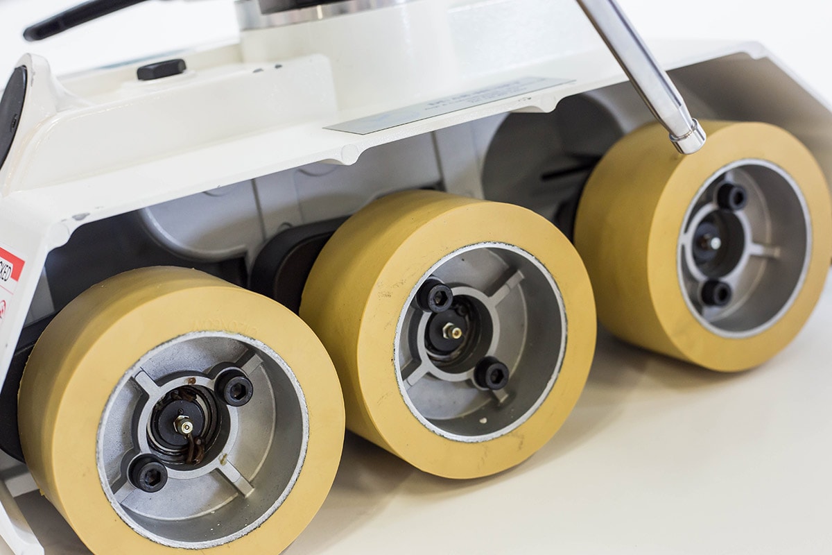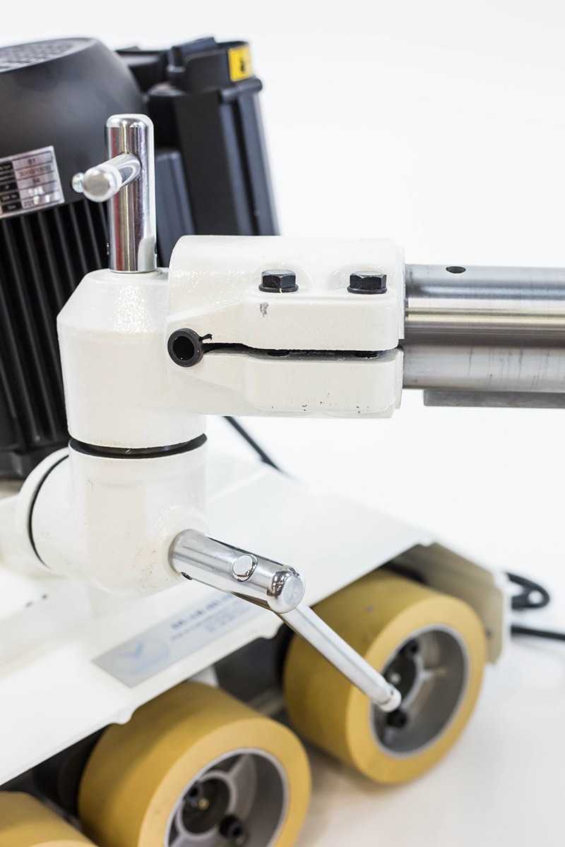 Tovejsophæng - både lodret og vandret. Tre (3) fremføringshjul fremstillet af blød gummi 120 x 60 mm. Otte (8) hastigheder i både frem- og baktilstand.