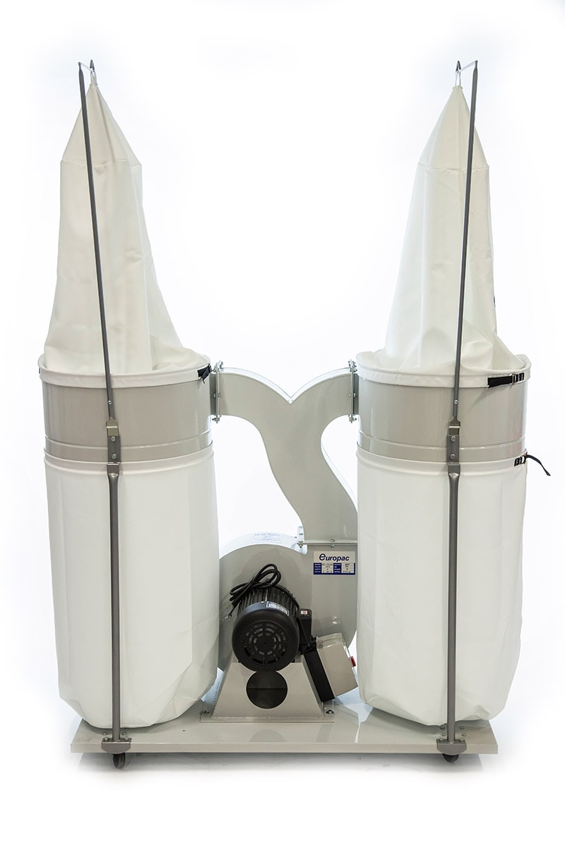 Europac EP-702B er en kraftfuld industriel spånsuger med en stofpose, både på over- og underside. Designet til at fylde så lidt som muligt. Spånsugeren er monteret på et hjulstativ, hvilket gør den nem at flytte. Opsamlingsposen tømmes nemt med et håndgreb.