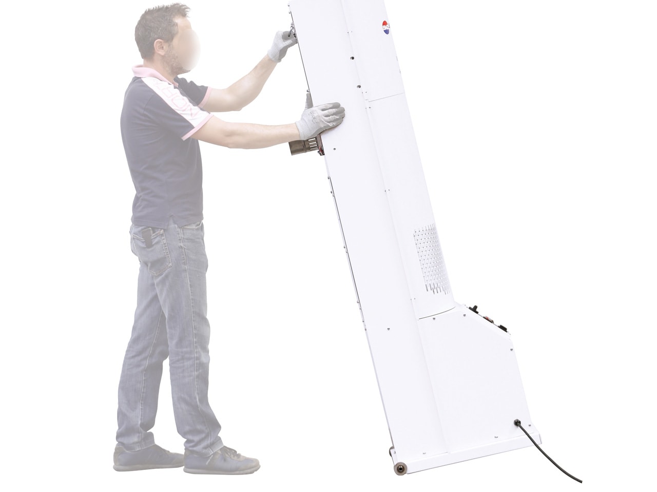 Højeffektiv stationær varmluftkedel udstyret med integreret rumtermostatstart, indbygget dieseltank med måler, rustfrit stål brænderkammer med aerodynamisk form, højeffektiv varmeveksler, flammevagt, overophedningsbeskyttelse, brændstoffilter, rustfrit stål fatning til udvendigt udstødningsafløb. Ideel til opvarmning af værksteder, industribygninger, lagerbygninger, garager og lignende, hvor der er behov for en fleksibel, let installeret og effektiv varmluftskedel.
