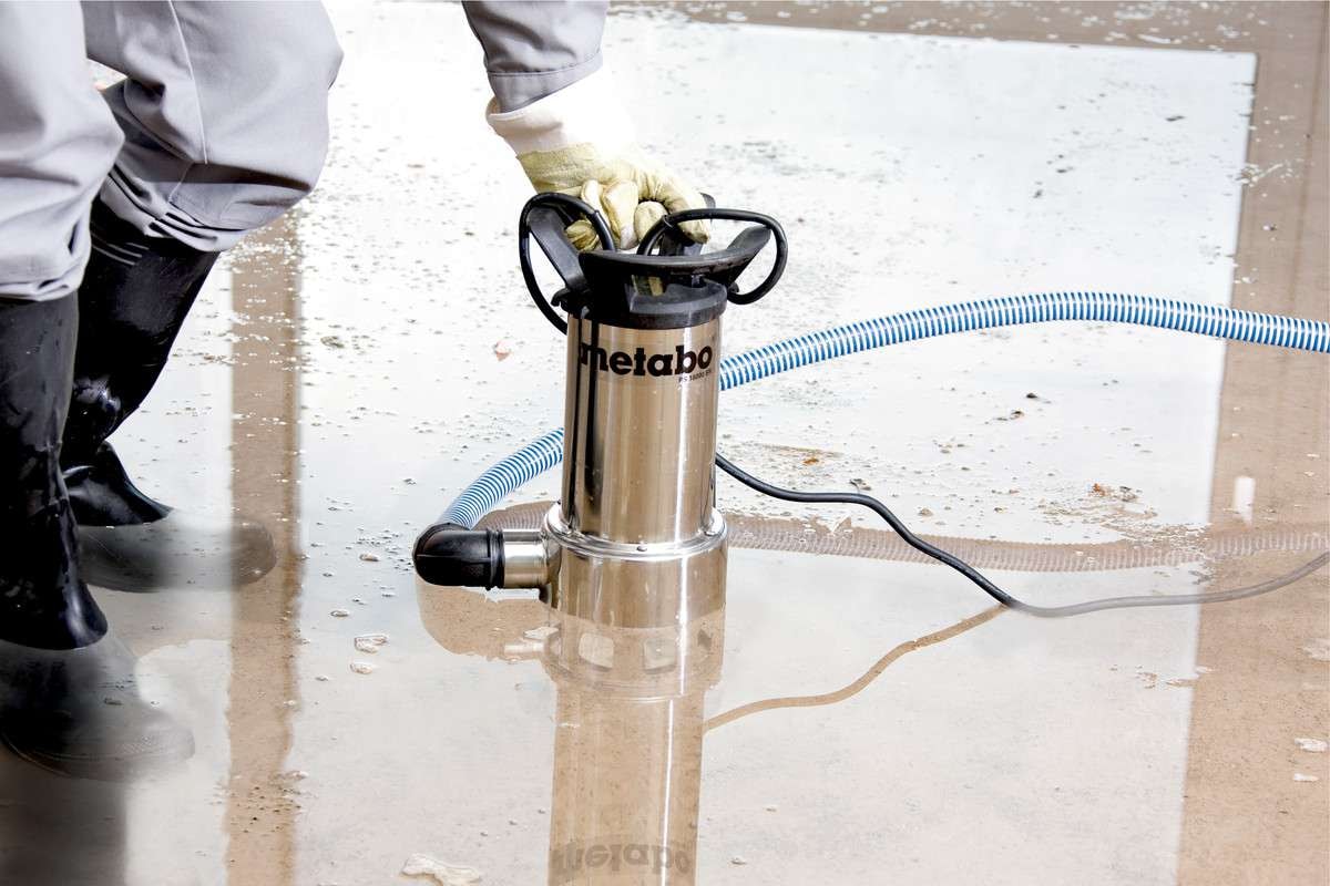Hurtig spildevands-dykpumpe med dobbelt pakningssystem, der beskytter pumpen ved beskidt eller forurenet vand. PS 18000 SN fra Metabo er ideel til opgaver med udpumpning, tømning og cirkulation af rent vand og spildevand fra beholdere, vandbassiner eller oversvømmede kældre.