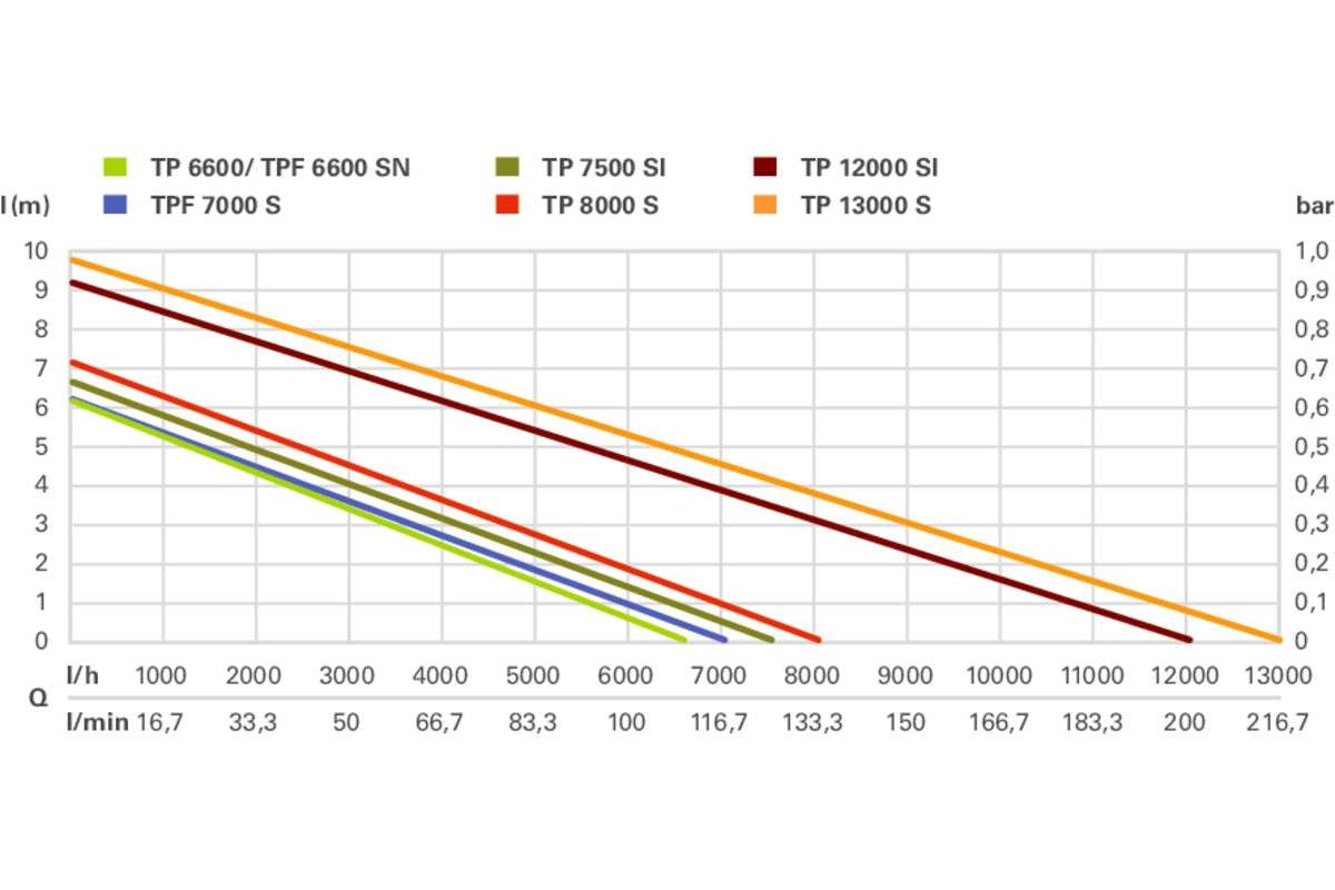 Fladt sugende til en resterende vandstand på 2-3 mm - praktisk rentvands-dykpumpe til udpumpning, tømning og cirkulation af rent vand fra beholdere, vandbassiner, svømmebassiner eller oversvømmede kældre. Metabo TPF 7000 S er også ideel til havevanding fra vandreservoirer.