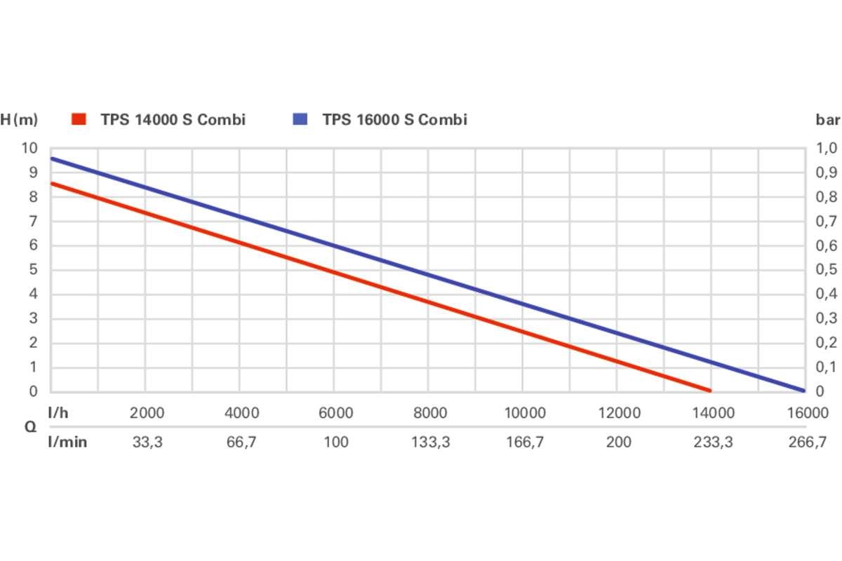 Kraftig kombi-dykpumpe til både rent vand og beskidt vand. Du kan med TPS 16000 Combi dykpumpen nemt skifte fra automatisk funktion med svømmeafbryder til manuel funktion til fladsugning. Ved sugning af rent vand, er pumpen fladsugende helt ned til ca. til 1 mm på f.eks. gulve.