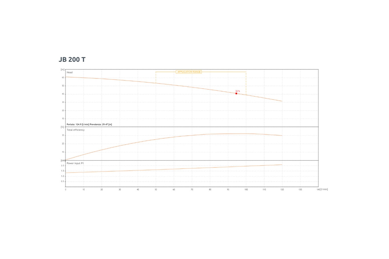 JB 200 T (3-faset) er en selvansugende, kraftig pumpe med højt tryk og et stort flow designet til at pumpe rent vand fra brønde, der også kan håndtere elementer af gas.