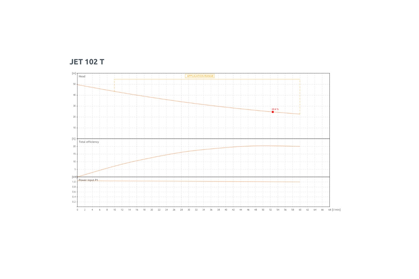 Jet 102 T (3-faset) er en selvansugende jetpumpe til pumpning af rent vand, der også kan håndtere elementer af gas.